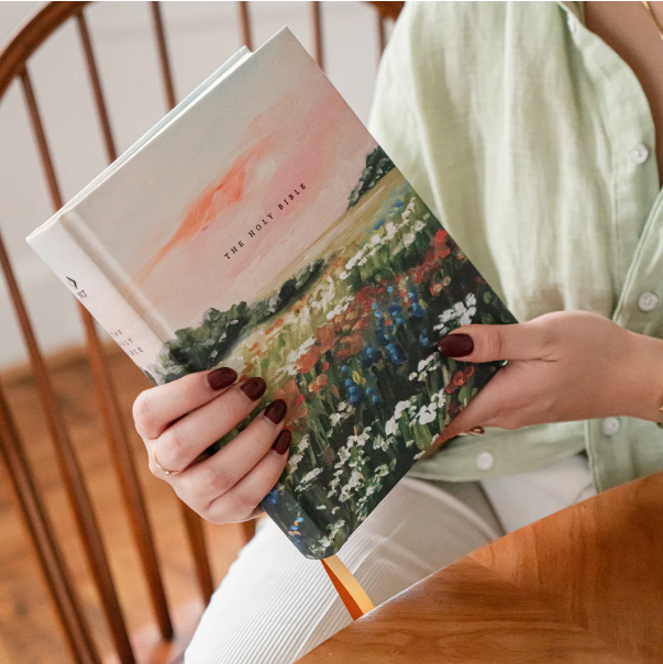 The words Coram Deo mean “in the presence of God”—this is where we all long to be! This intricate landscape was inspired by Coram, Montana, a tiny town nestled in the foothills of Glacier National Park. With rolling flower fields and a spacious sunset, this Bible reminds us of God’s captivating creation and beckons us to return to his presence. Our hope with every design we create is just that—to inspire you to run to the Father where you are deeply known and forever loved.